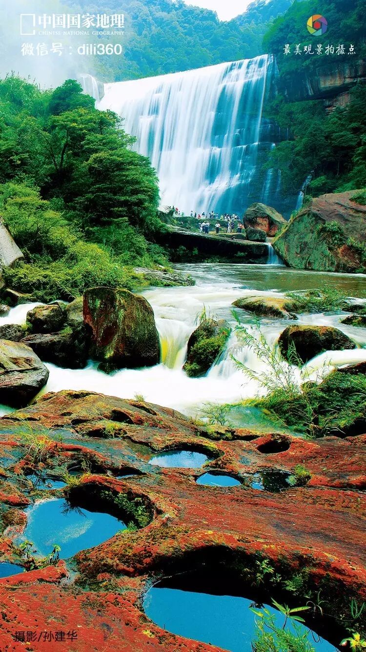 一溪悬捣,万练飞空,溪上石如莲叶下复......当年,徐霞客曾这样赞美于它,您可曾猜到这是何方仙境?这就是亚洲第一大瀑布——黄果树瀑布,它位于中国贵州安顺黄果树风景名胜区内,瀑布高77.8米,宽101米。白水河象一条玉带,蜿蜒流淌在崇山峻岭之间,滑过石板,冲破石峡,从断崖绝壁上飞奔而下,汹涌澎湃,直泻犀牛潭,可谓“飞流直下三千尺,疑是银河落九天”。
